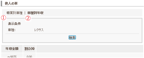 車種別の年収割合などを見る統計機能