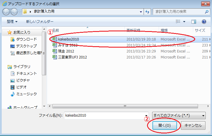 エクセル家計簿の取り込み方法