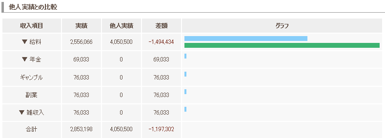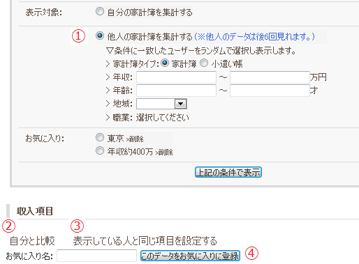 ユーザーの特定を防ぐため、条件に一致したユーザーが一定人数に達していない場合は、家計簿は表示されません。